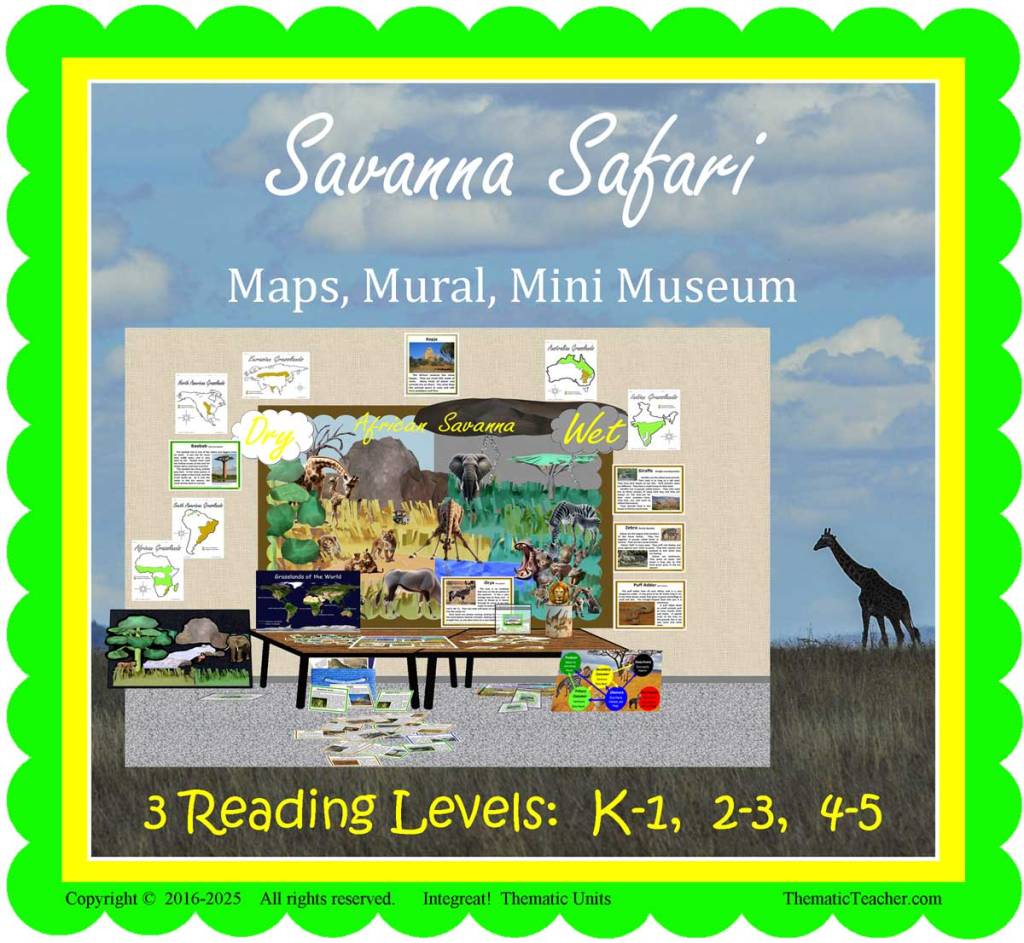Build a savanna—right in your own classroom—using butcher paper, construction paper, cutouts (included) and silk plants. Then stock your “savanna” with reading materials, games, and manipulatives that your students can use to explore this amazing biome. Individual items are also available separately.